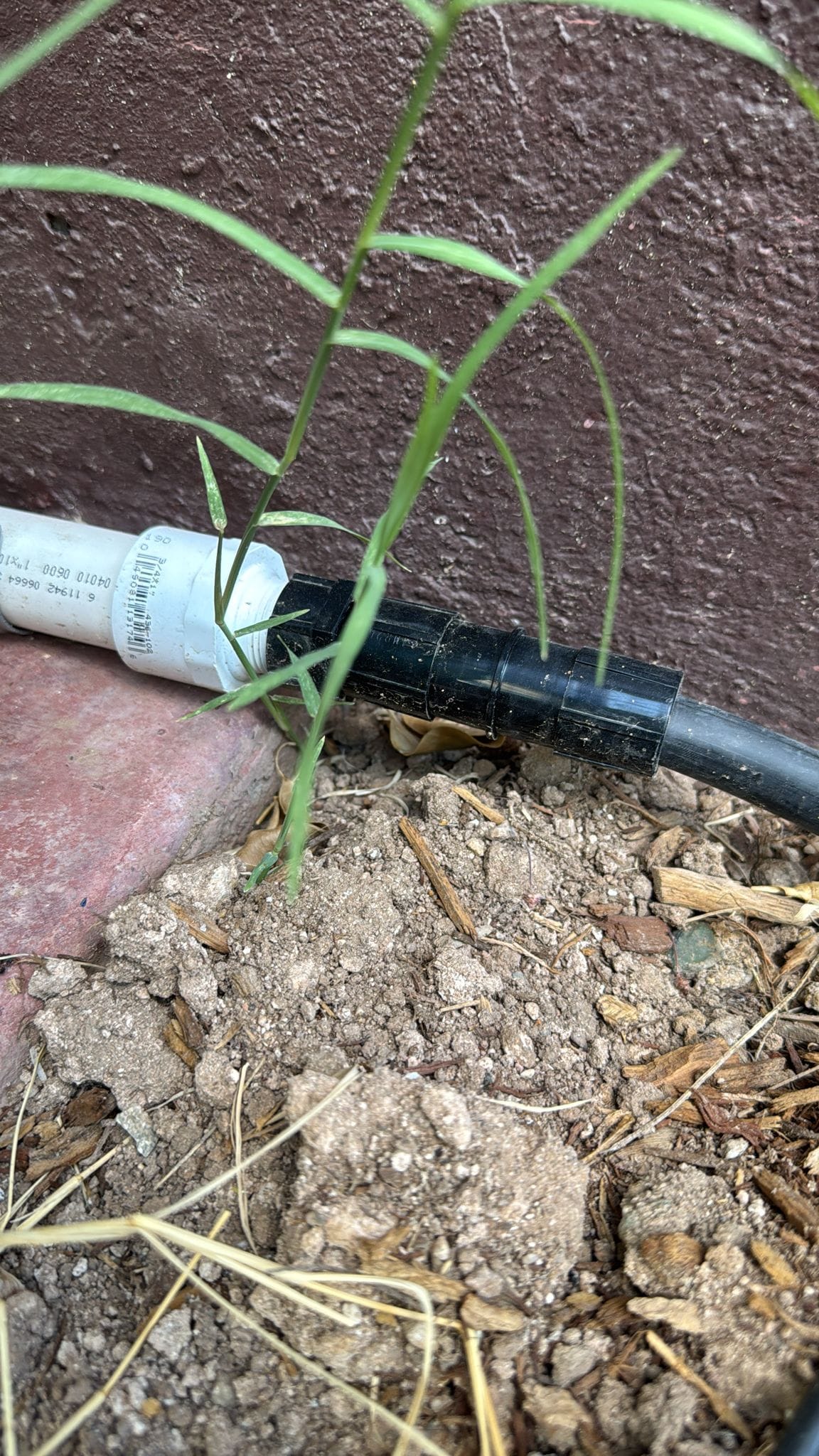 The last thing is to connect the irrigation poly (3/4") into one of the ends of the system. The other end (which I'm not showing), goes to the drain.